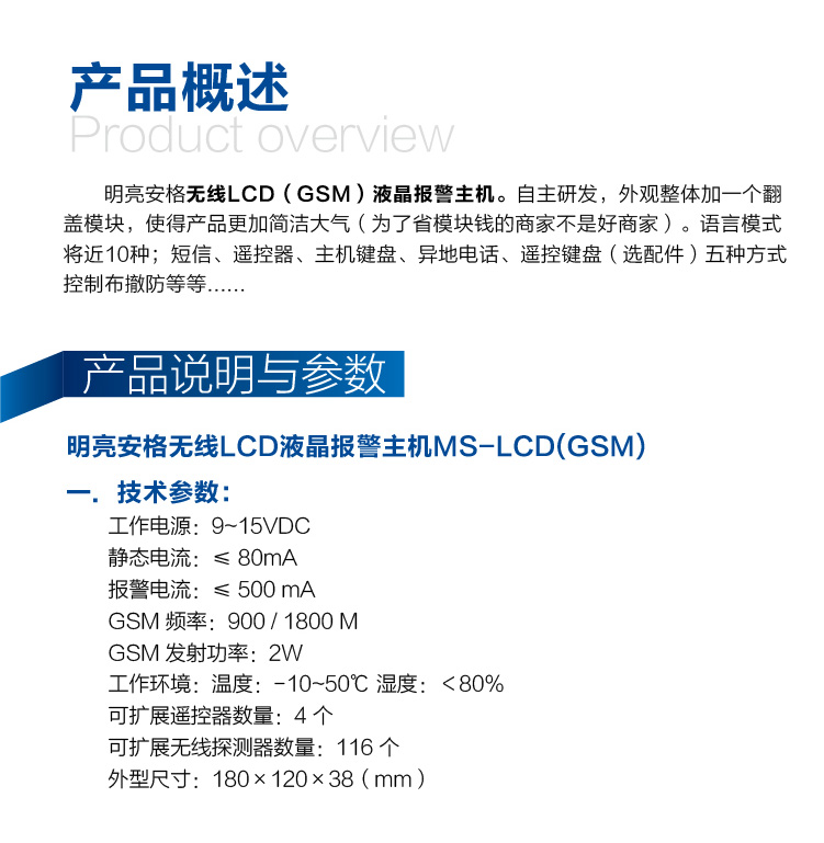 明亮安格智能防盜報警系統(tǒng),是以明亮安格無線LCD(GSM)液晶報警主機,將隱形防護網(wǎng)、無線LC斷線短路報警器、智能門磁組成一個整體,實現(xiàn)全天24小時布防警戒,從而實現(xiàn)全天24小時智能防盜報警功能。它擁有以下幾大功能: